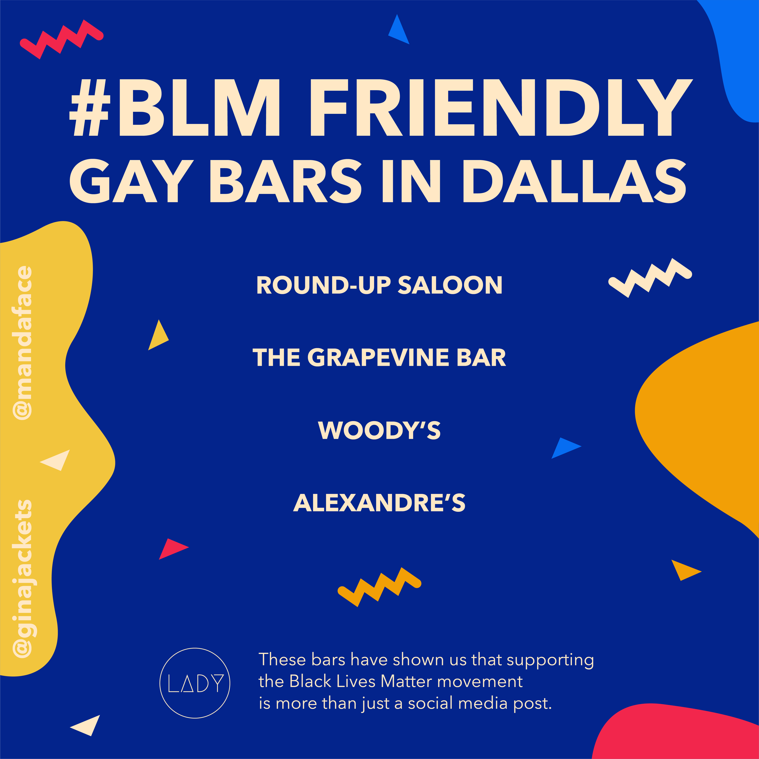 A non-profit queer group based in Dallas, Tx was looking for volunteers to create fun and inspiring social justice graphics that provided options to take action. These are the one’s I created for them.